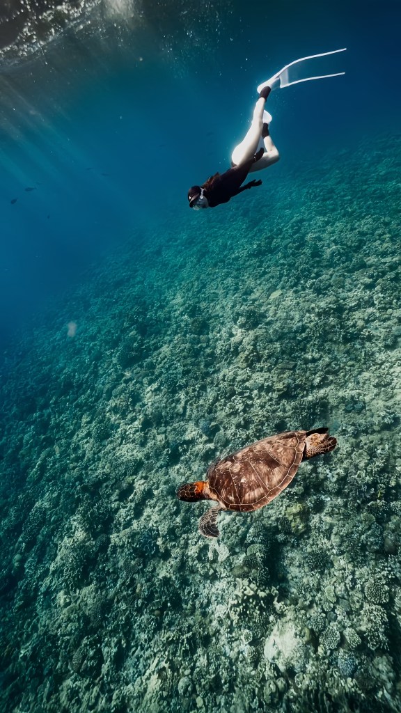 沖繩是世界知名的潛水勝地,擁有得天獨厚的自然環境和豐富的海洋生態。選擇自由潛水,源於我對挑戰自我極限的渴望,不依賴氧氣瓶,只憑藉一口氣潛入水中,感受那份純粹的自由與壯麗。